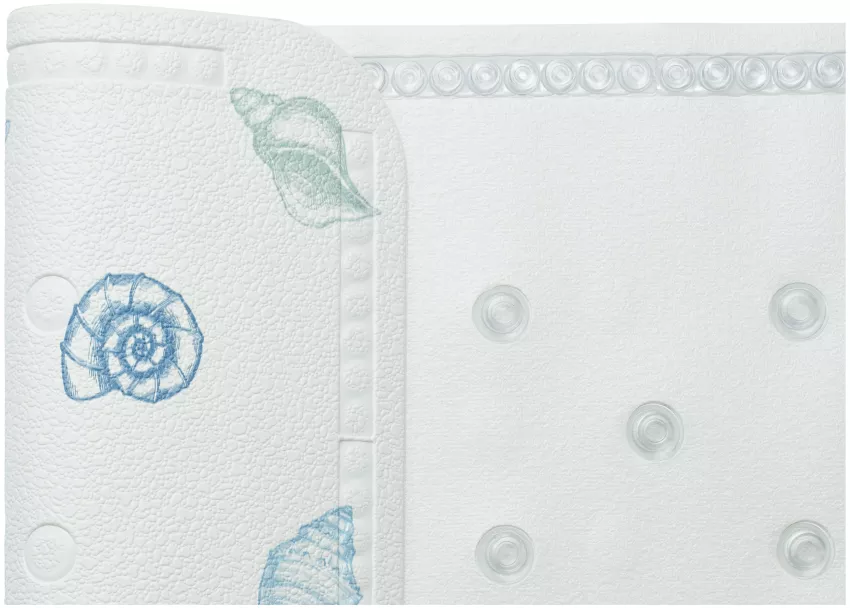 Unsere klassische Wanneneinlage Smoothie Mare vermittelt Sicherheit und Komfort und setzt mit ihrem maritimen Dekor aus Meerestieren in blau einen frischen und stimmungsvollen Akzent in deinem Badezimmer. Die aufgeraute Oberfläche und die exzellent haftenden Saugnäpfe auf der Unterseite sorgen während dem Duschen für eine hohe Trittsicherheit und verhindern ein gefährliches Ausrutschen. Das hautfreundliche Material ist komplett frei von schädlichen Phthalaten.