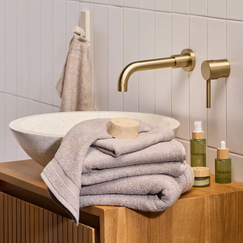 Pour garantir la longévité et la capacité d'absorption de ton linge éponge, il est important de le laver soigneusement en machine avant de l'utiliser pour la première fois. Utilise une température maximale de 60°C. Veille à toujours laver les couleurs intenses et foncées séparément des textiles clairs afin d'éviter les décolorations.